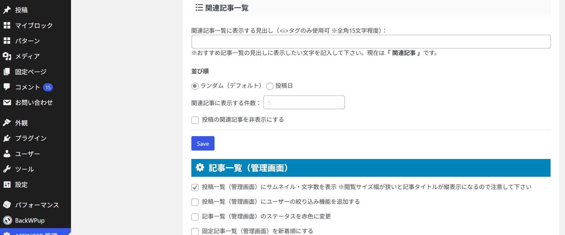 AFFINGER 管理 > 投稿・固定記事 > 関連記事一覧
