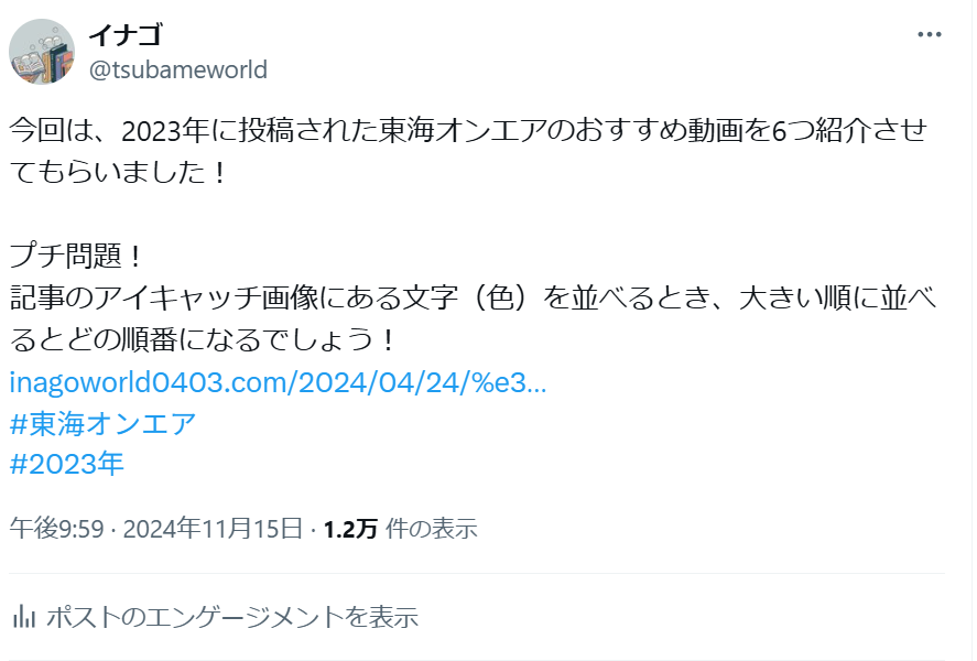 先日テンプレ化した投稿内容でポストしました。
