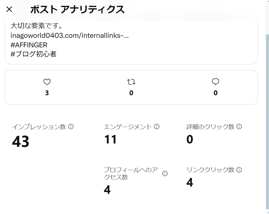 これを使い分析することでどの投稿が見られやすいのか傾向を知ることが出来ます。
