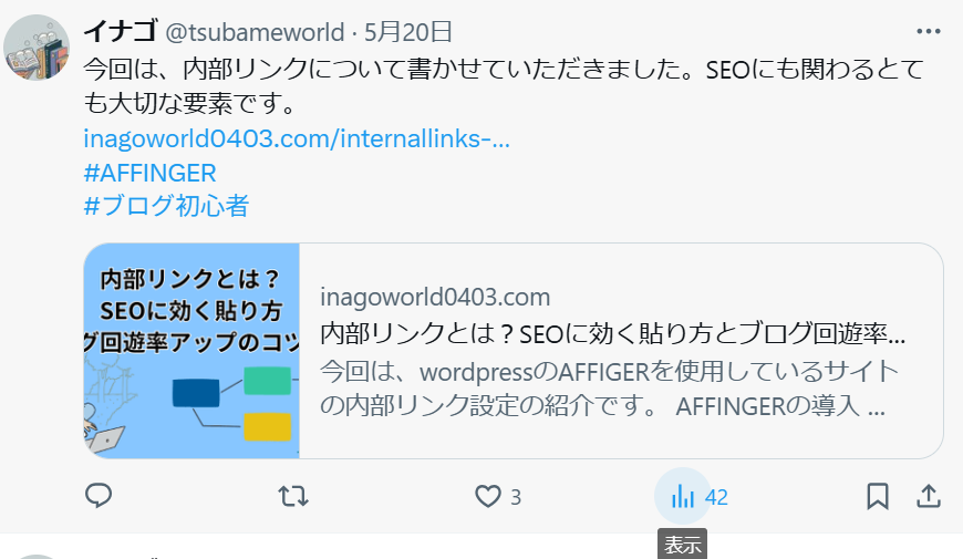 今回は、ブログ運営者向け:Xで記事を拡散させる3つの工夫について書かせていただきました。ブログを運営する上で読者は欠かせない存在です。読んでもらうには信用されることがとても大切になります。少しずつ良いサイト作り、記事投稿をして行きましょう。