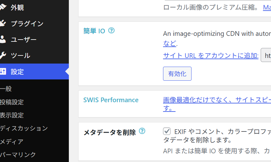設定 > EWWW Image Optimizer > 「メタデータ削除」がONになっている