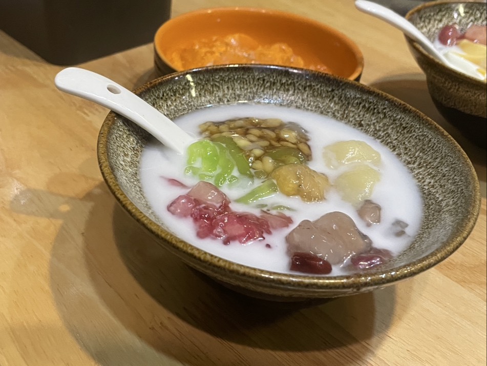 最初にいただいたチェーでは、豆やココナッツ、タピオカ、ゼリーなどいろんな美味しいモノがいっぱいのチェーを食べました。