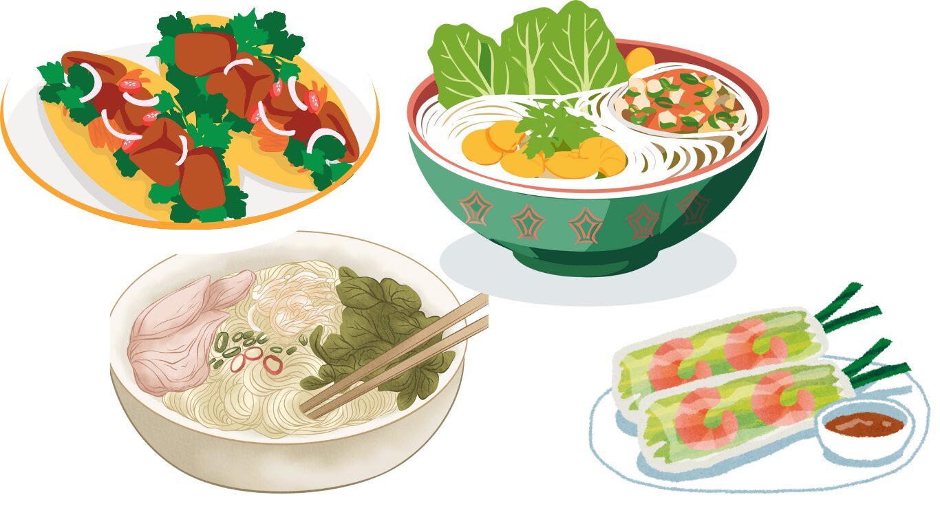 有名な食べ物は、『フォー』『バインミー』『ブンチャー』『チェー』『ゴイクン(生春巻き)』などがあります。
